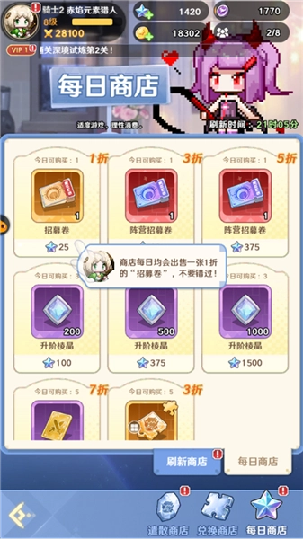 最核心的获取手段,商店解锁后,每日商店和刷新商店均是重要的产出途径,且有一些折扣(还能刷到属性招募卷和时光沙漏加速建造),若自身升阶棱晶储量不足5000时,可以持续使用星钻购买500个(含)以下的升阶棱晶。(主要是数量低的有折扣)若是急需,1000个也可以购买。