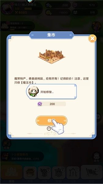 1、建造集市能吸引人流,我们就能从中赚取【魔王币】