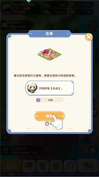 4、【仓库】能够增加魔王城的资源存储上限,一旦存储量不够,生产活动便无法开展。