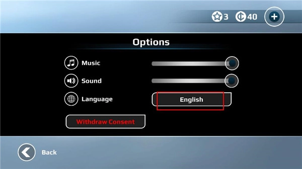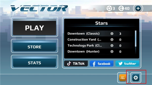 1、在本站矢量跑酷中文版,进入游戏界面,点击右下角齿轮。