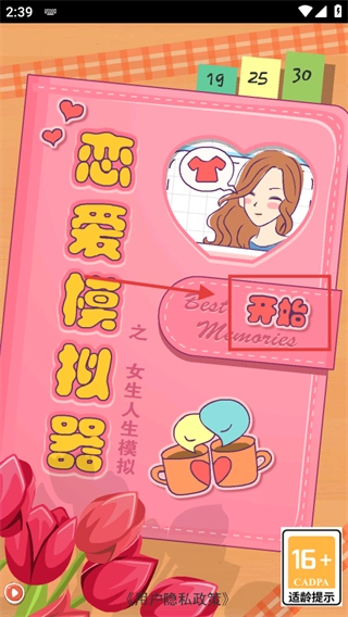 1、点击【开始】按钮进入游戏,化身女主角开启与美男子邂逅的恋爱模拟人生。