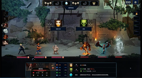 4、点击确认后勇者们就会登场,当轮到魔物出招是你可以选择使用不同的技能来攻击勇者,每一位魔物都有不同的技能可以使用。