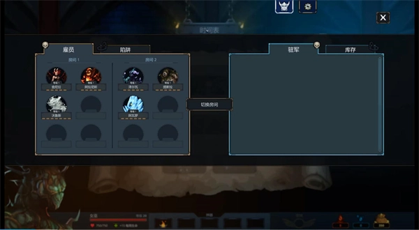 1、有各种魔物和陷阱可以让你布置在自己的地牢里,你可以随意选择不同的房间来布置自己的阵容。