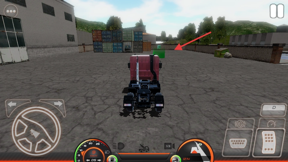 2、操控卡车驶向绿色标记区域,熟悉转向、油门操作,为后续货运任务做准备。