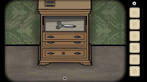 3、打开左边的盒子获得「钥匙」,移动旁边盒子上的方块到正确的位置,打开盒子后获得「照片碎片」,点击镜子穿上大衣,出现女人后来到门口