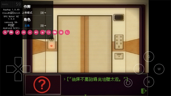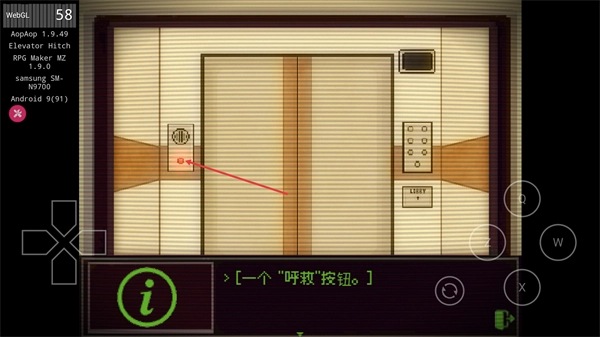 1、在电梯场景中,点击电梯的红色按钮,看到界面提示的一个呼救按钮,这是推进当前电梯场景剧情的关键操作。
