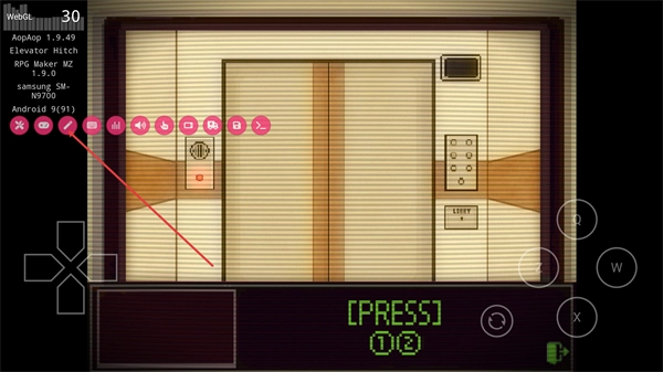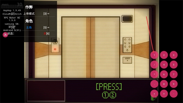 3、看到界面底部的PRESS提示及对应的数字标识,点击顶部对应的按钮,调出数字按键,继续推进游戏。