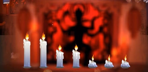 7、窗户上放着蜡烛,按照窗户上蜡烛的提示解开神像蜡烛的谜题,就能得到半截蜡烛,之后向右走切换场景。
