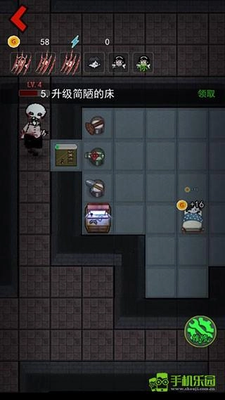 5、玩家在睡眠状态下会自动产生金币,这些金币可以用于升级门、床以及装备武器。