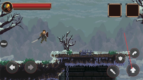 3、在场景中遇到地形落差时,点击跳跃按钮控制角色跳跃,跨越障碍登上台阶,保障角色在关卡中顺利行进。