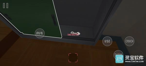 3、游戏采用第一人称视角,角色移动由左侧虚拟轮盘操控,RUN是奔跑功能键,USE为拾取与互动的按键,CROUCH则是蹲下键;