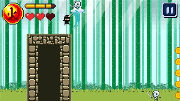 3、点击屏幕,忍者便会跳跃;当忍者跃至最高点时,再次点击屏幕,即可触发二段跳跃。