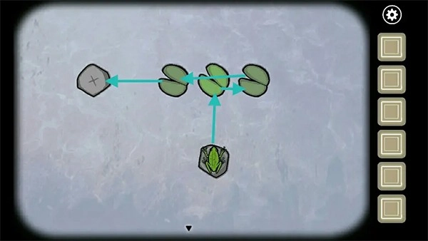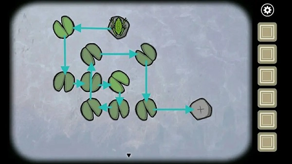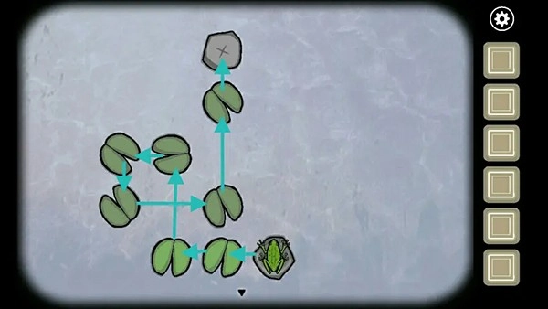 1、在大门右侧的湖面找到青蛙,按照正确的路线依次跳过所有荷叶,最后停在石头上,就能获取第一只青蛙。