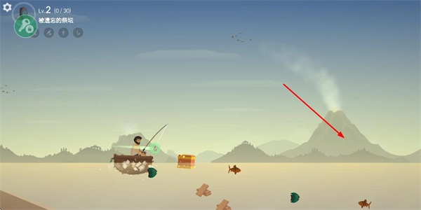 3、钓鱼后等级提升至2、观察场景内的区域、准备继续开展钓鱼相关的探索操作。