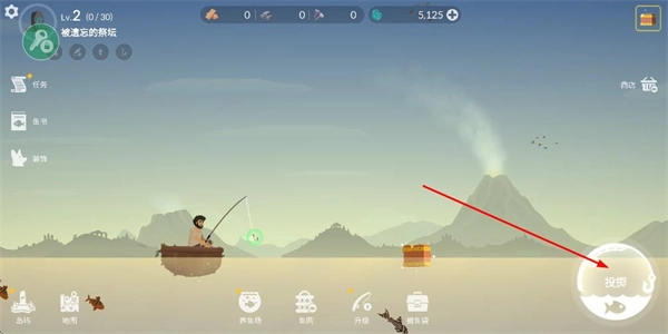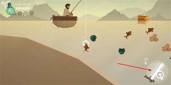 1、处于钓鱼界面、点击收线按钮、尝试钓取当前区域的鱼类、推进钓鱼相关进程。