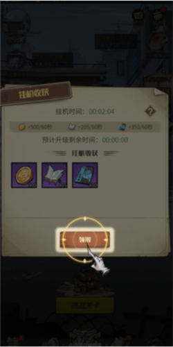 4、挂机奖励,领取挂机收获,积累金币、经验和升级材料用于提升角色。