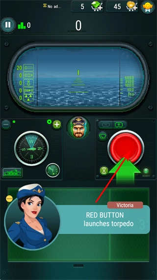 2、点击右侧的红色按钮,可发射鱼雷,这是攻击敌方目标的关键操作,合理使用能有效摧毁敌人。