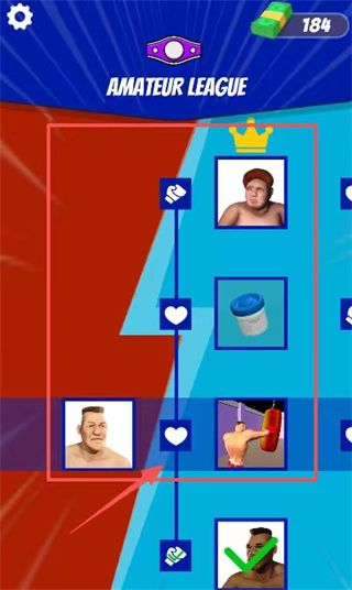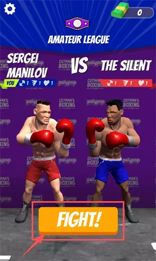 1、点击诊所中央橙色的FIGHT战斗按钮就能开启拳击赛事,要全程留意选手头顶的血量爱心状态条,借助角落的齿轮设置按钮可以调整游戏参数或者兑换金币奖励。