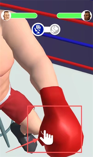 2、治疗环节需重点观察拳击手腿部悬浮的状态进度条,点击蓝色手掌图标实施急救恢复血量,灰色拳头按钮用于发动反击,所有操作需紧跟白色手形光标的实时指引。