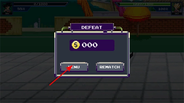 战斗失败后,按下MENU键可回到游戏主菜单,在那里可以选择重新挑战、更换角色或进行相关设置操作。