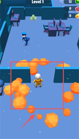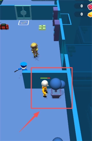 操控角色时,需要长按屏幕下方的无限符号并拖动,以此引导黄色小人灵活移动。过程中要留意躲避持有红色武器和棍子的巡逻人员,同时收集右上角随机刷新的特殊道具。