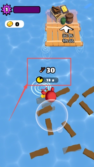 1、当看到木筏上出现“30木材可兑换10金币”的提示后,点击木筏周边的水面收集木材,待木材数量满足要求时,即可前往兑换金币。