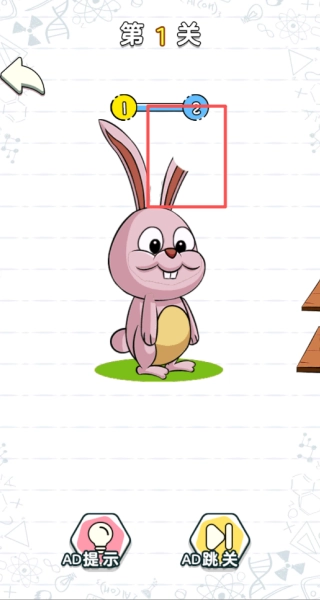 2、以补全脑洞为例,进入第一关,你需要把小兔子的耳朵补齐。