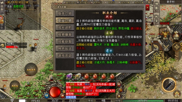 2、新手或散人玩家建议选择道士开局,其召唤物和辅助能力使其在开荒期生存能力最强。喜欢爽快输出的玩家可选择法师,追求极致爆发的则可选战士。