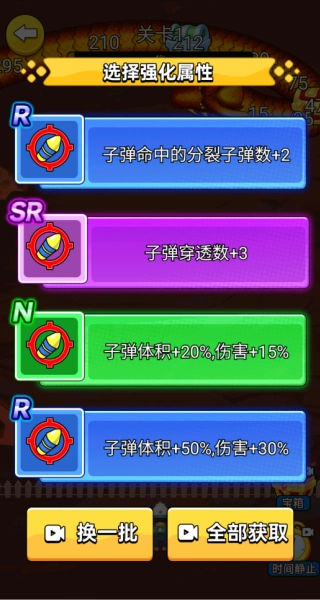 2、选择强化不同的属性,比如增加子弹命中的分裂子弹数以及子弹穿透数等等。