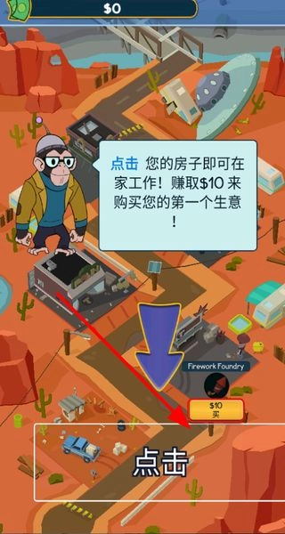 1、游戏开始时点击房子,就能在家工作赚取10美元,等攒够钱就可以去购置第一份产业,正式开启赚钱的旅程。