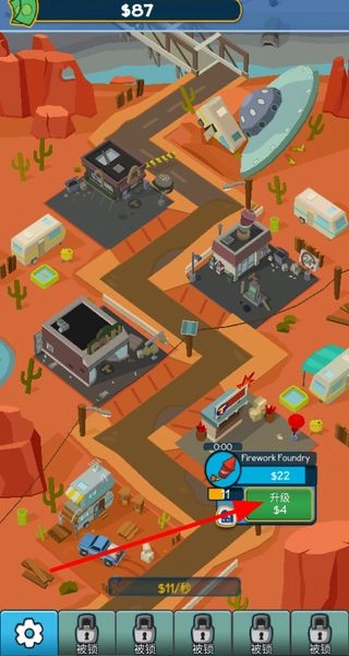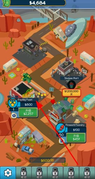 3、当有足够资金时,点击升级按钮,能提升生意的等级,让生意带来更多的收益。