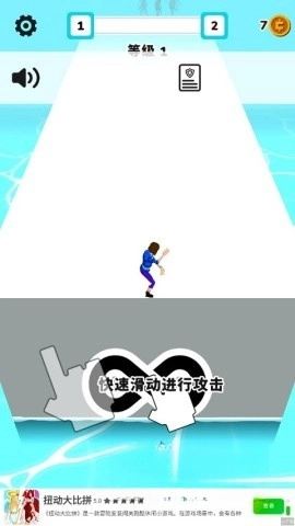 1、如图所示,通过快速滑动屏幕并自由拖动来操控角色移动。在挑战场景里会遇到数量不一的敌人,朝敌人方向滑动手指让角色移动过去,松开手指就能发动攻击。
