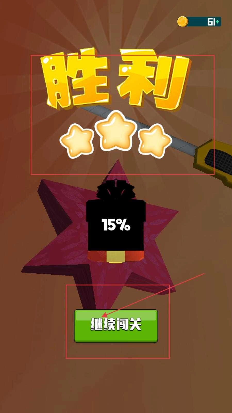 4、在关卡胜利后可获得三星评价和金币奖励,点击继续闯关进入下一关,继续挑战更复杂的切割任务,积累金币和经验。