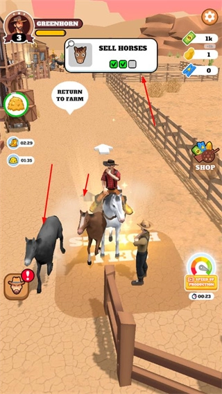 2、完成BUY HORSES任务,购买马匹,拓展农场养殖品类,丰富经营内容。