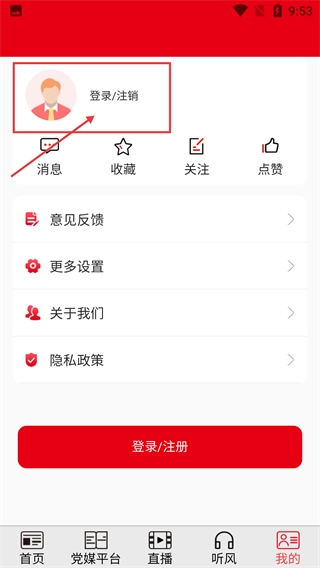 3、在个人中心页面,点击【登录/注销】选项,进入登录页面。