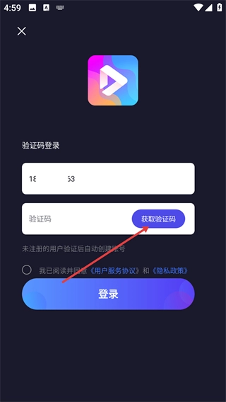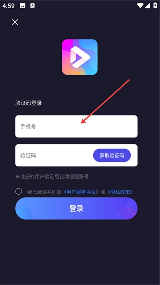 2、在验证码登录页面输入手机号码。