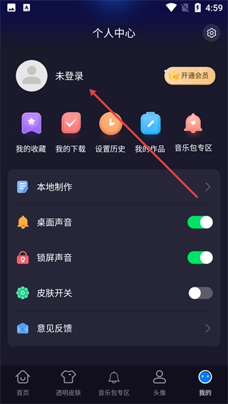 1、进入个人中心页面后,点击页面上的【未登录】区域,即可跳转至验证码登录页面。