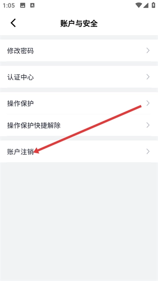 4、在账户与安全页面点击【账户注销】选项,即可发起账户注销操作。