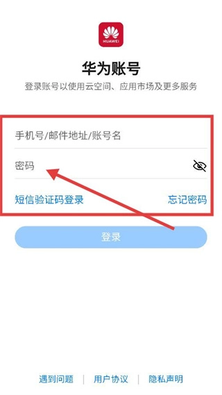 3、在【华为账号】登录页,可通过【手机号/邮件地址/账号名】+密码登录,也可选择【短信验证码登录】或【忘记密码】功能。
