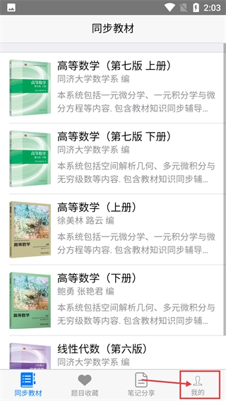 1、打开大学基础数学首页后,点击页面底部的【我的】图标,即可进入个人中心页面。