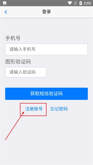 3、在登录页面,点击【注册账号】选项,进入注册页面。