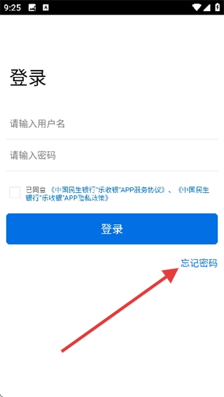 1、点击【忘记密码】选项,即可进入密码找回界面。