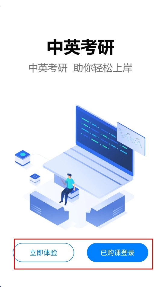2、根据需求选择【立即体验】或【已购课登录-功能按钮】,进入对应页面。