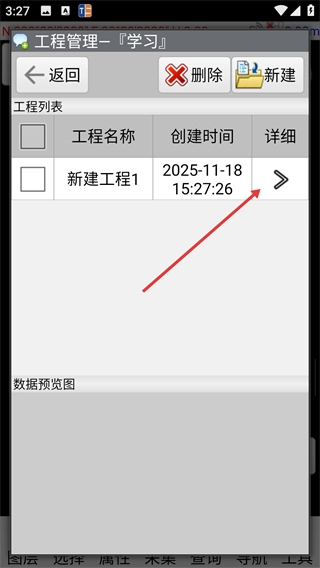 3、在工程列表界面点击新建工程的详细按钮,进入工程详细信息页面。