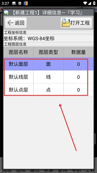 4、在工程详细信息页面查看工程的坐标系统和图层信息,完成工程创建操作。