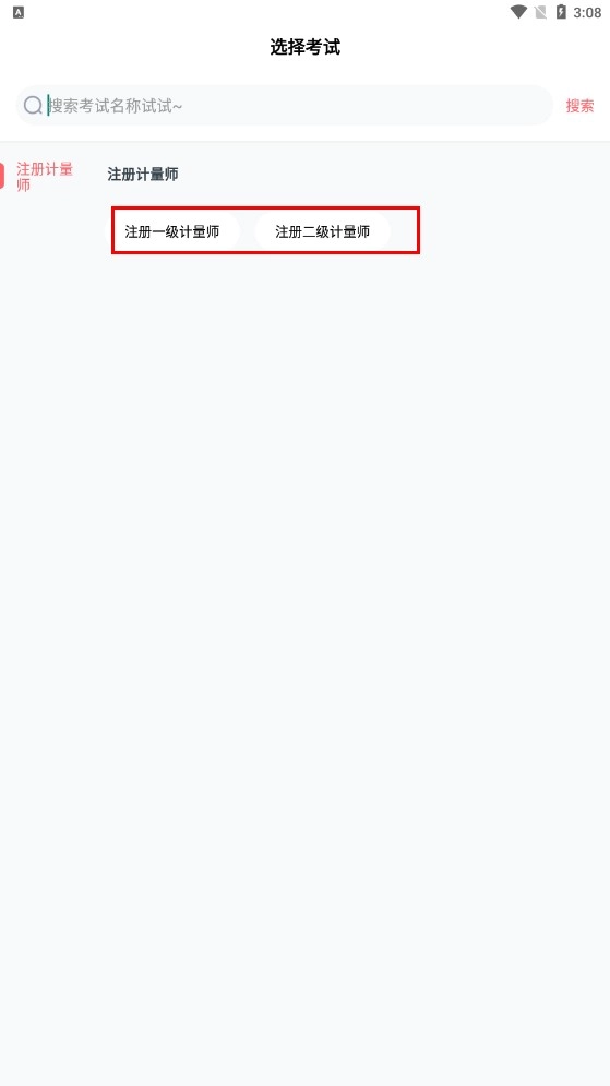 1、进入考试选择页面后,请选择【注册一级计量师】或【注册二级计量师-考试类型】选项。