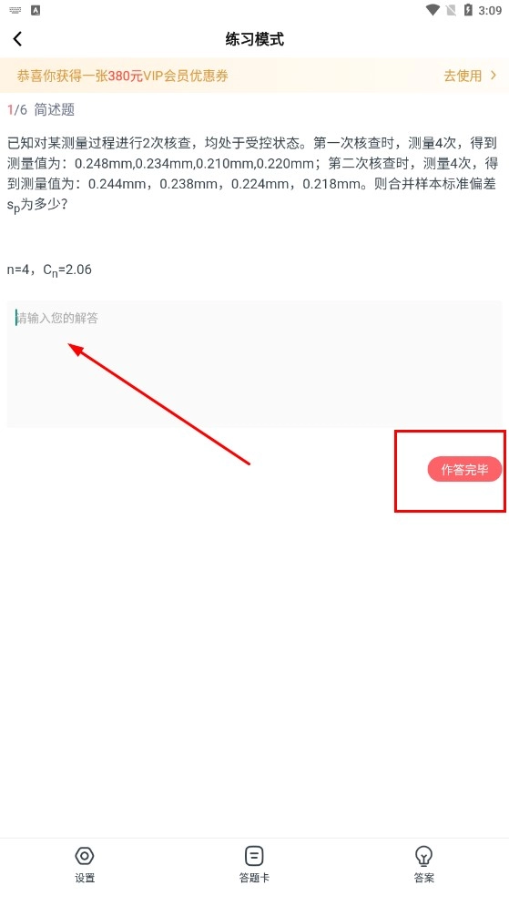4、在练习模式下,输入解答后点击【作答完毕-功能按钮】完成答题。
