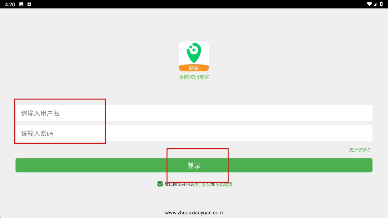 2、在登录界面输入【用户名】和【密码】,勾选协议后点击登录按钮。
