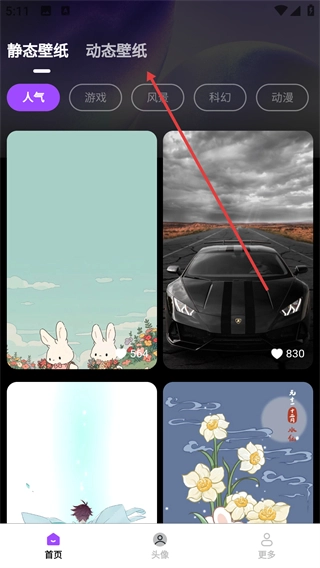 1、点击【动态壁纸】选项,即可切换至动态壁纸分类界面。