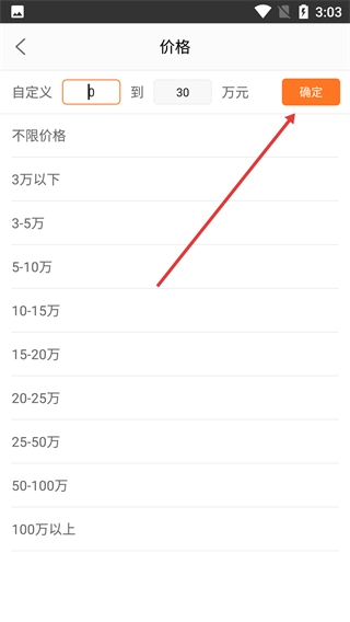 3、在价格设置界面自定义价格区间后,点击【确定】按钮。